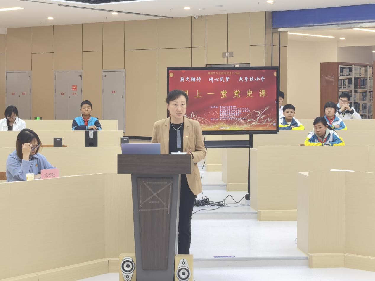 4月25日下午,我校在图书馆四楼学术圆厅开展典耀中华主题阅读推广活动——“薪火相传·同心筑梦—大手拉小手,同上一堂党史课”主题教育活动,本次活动由图书馆、图书馆与档案馆党支部、医学人文学院学生党支部、共青团贵州医科大学委员会、党委宣传部、教务处共同主办,图书馆学生服务中心协办。活动由图书馆与档案馆党支部书记刘亮主持,医学人文学院党委副书记兼纪委书记马琳娜、马克思主义学院教师陈娅娅、贵安新区马场镇洋塘小学师生代表、大学生代表共100余人参与。